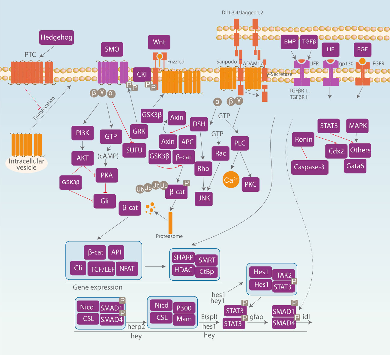 Stem cells are undifferentiated biological cells that can differentiate into specialized cells and can divide (through mitosis) to produce more stem cells. The Wnt signaling pathways are a group of signal transduction pathways made of proteins that pass signals from outside of a cell through cell surface receptors to the inside of the cell. Specifically, the JAK/STAT, Hedgehog, Wnt, Notch, Smad, PI3K/phosphatase and tensin homolog, and NK-κB signaling pathways have all been shown experimentally to mediate various stem cell properties, such as self-renewal, cell fate decisions, survival, proliferation, and differentiation. Cancer stem cells (CSCs) have been believed to be responsible for tumor initiation, growth, and recurrence. Numerous agents have been developed to specifically target CSCs by suppressing the expression of pluripotency maintaining factors Nanog, Oct-4, Sox-2, and c-Myc and transcription of GLI. Induced pluripotent stem cells (iPSCs) have the capacity to differentiate into various types of cells, and a self-renewing resource, and scientists can experiment with an unlimited number of pluripotent cells to perfect the process of targeted differentiation, transplantation, and more, for personalized medicine.