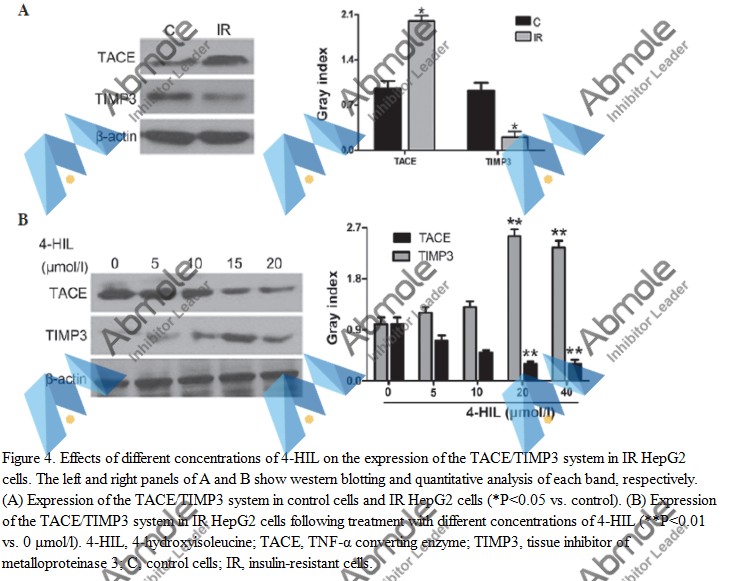 | Preparation method | The established IR HepG2 cells were then treated with different concentrations of 4-HIL (0, 5, 10, 20 and 40 µmol/l) for 24 h and glucose uptake was determined as described above. |