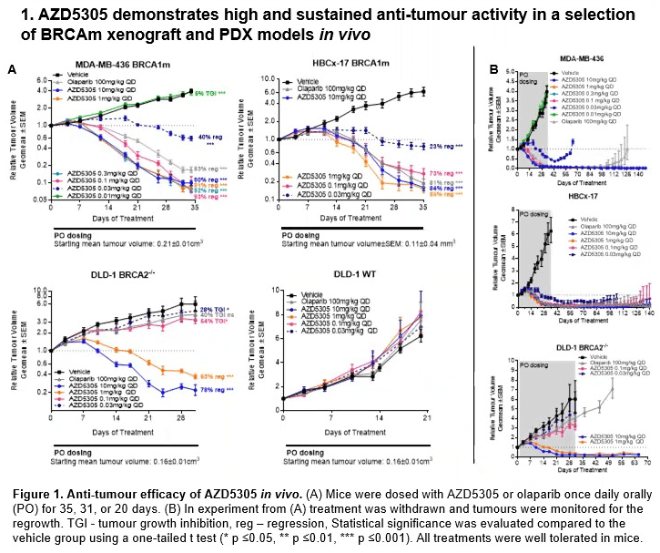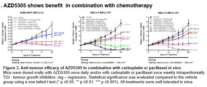 | Results | AZD5305 shows benefit in combination with chemotherapy. |