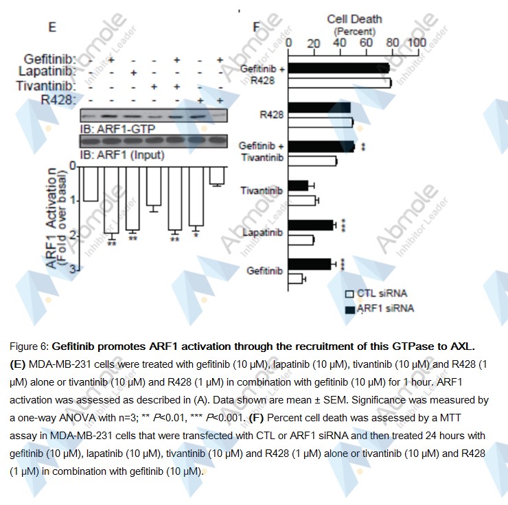 The small GTPase ADP-Ribosylation Factor 1 mediates the sensitivity of triple negative breast cancer cells to EGFR tyrosine kinase inhibitors.