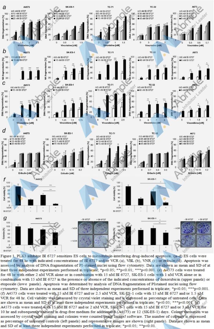 BI 6727 (Volasertib) is a small highly potent Polo-like kinase inhibitor (Plk) with an IC50 of 0 .87 nM and EC50 of 11-37 nM on a panel of cancer cell lines, which exhibited significant anti-proliferative in multiple cancer models, including a model of taxane-resistant colorectal cancer. BI 6727 (Volasertib) caused programmed cell death in colon and non-small cell lung cancer cells both in vitro and in vivo.