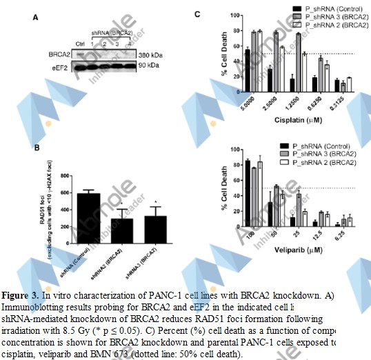 Increased in vitro and in vivo sensitivity of BRCA2-associated pancreatic cancer to the poly(ADP-ribose) polymerase-1/2 inhibitor BMN 673.