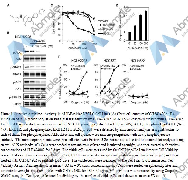 | Preparation method | Cell growth inhibition and caspase-3/7 assay Cells were incubated with various concentrations of compound for the indicated time. The viable cells were measured by Cell Counting Kit-8 assay (M4839) or CellTiter-Glo luminescent cell viability assay. Caspase-3/7 assay was evaluated using the Caspase-Glo 3/7 Assay Kit. |