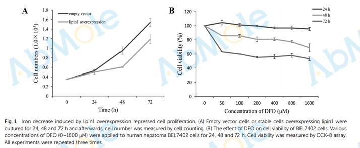 Iron depletion participates in the suppression of cell proliferation induced by lipin1 overexpression.