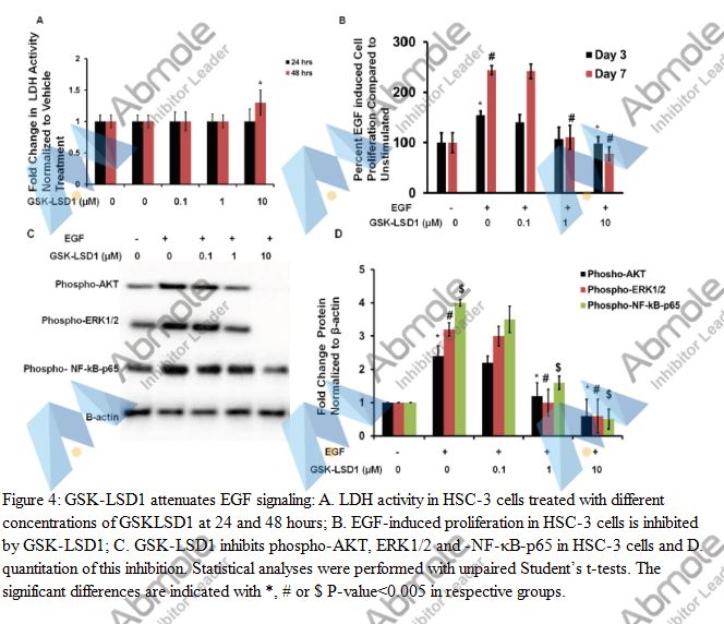 GSK-LSD1 dihydrochloride induces gene expression changes in cancer cell lines with average EC50 of < 5 nM and inhibits cancer cell line growth with average EC50 of < 5 nM.