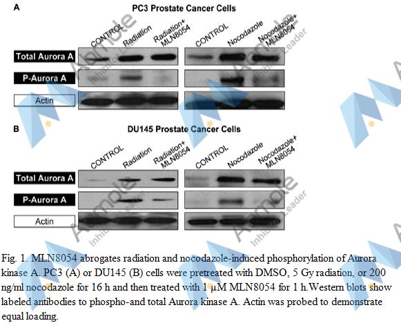 MLN8054 is an orally bioavailable, highly selective small molecule inhibitor of Aurora with IC50s of 0.004uM and 0.172uM. for Aurora A and Aurora B.Auora kinase inhibitor MLN8054 binds to and inhibits Aurora kinase A, resulting in disruption of the assembly of the mitotic spindle apparatus, disruption of chromosome segregration, and inhibition of cell proliferation.