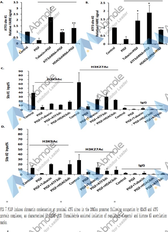 | Preparation method | Cell adhesion assay Prior to SDF-1α (100 ng/ml) stimulation, Raji cells were treated with DMSO, NaB (1 μM), or tubacin (1 μM) for 3 hours. Then cells were plated into a 96-well plate which were precoated with Fibronectin (50 ng/ml) to allow cell adherence for 30 minutes. Subsequently cells were washed with PBS three times to remove the non-adherent cells, and adherent cells were measured by CellTiter-Glo luminescent cell viability assay kit. |
