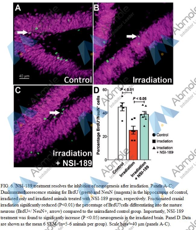 NSI-189 has been shown to stimulate neurogenesis of human hippocampus-derived neural stem cells in vitro and in vivo.When in vitro,The hippocampus is responsible for the consolidation of information from short-term memory to long-term memory, along with spatial navigation.In vivo,NSI-189 increases the hippocampal volume of healthy adult mice by 20%.