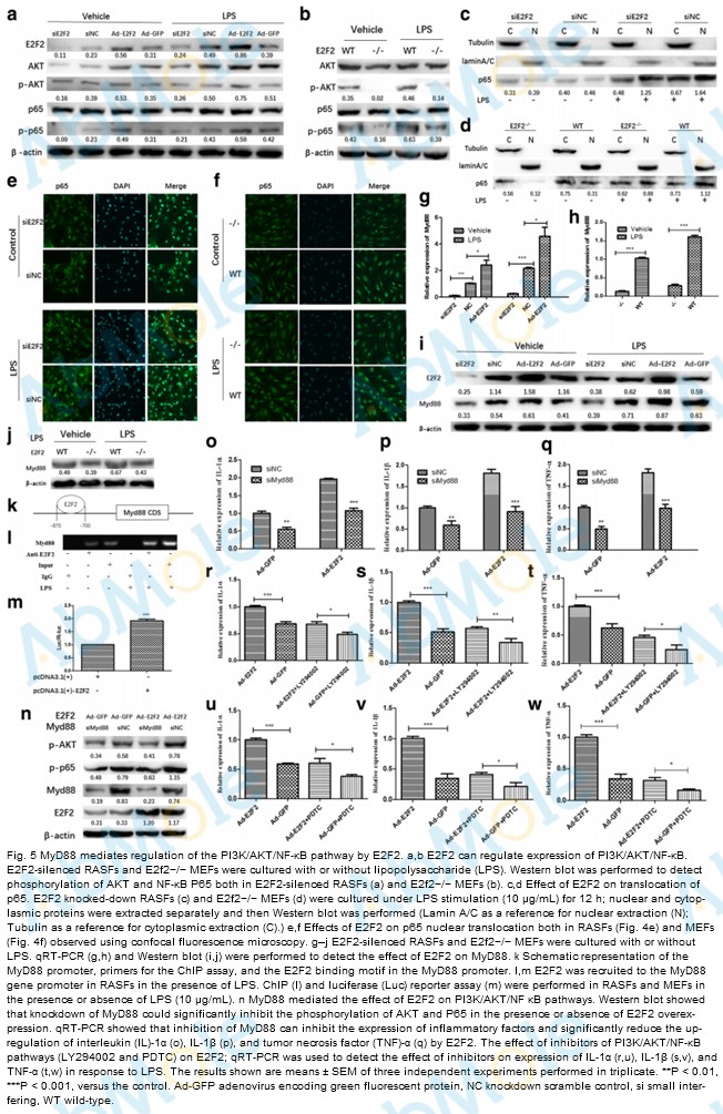 E2F2 directly regulates the STAT1 and PI3K/AKT/NF-κB pathways to exacerbate the inflammatory phenotype in rheumatoid arthritis synovial fibroblasts and mouse embryonic fibroblasts.