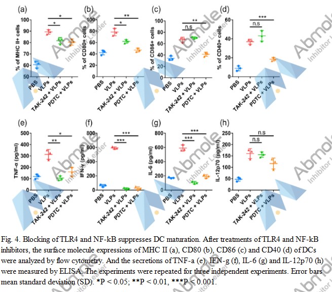 Newcastle disease virus-like particles induce DC maturation through TLR4/NF-κB pathway and facilitate DC migration by CCR7-CCL19/CCL21 axis.