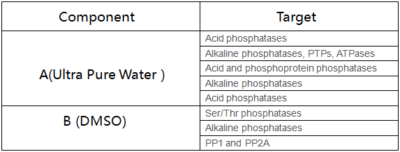2. Phosphatase Cocktail is added to the prepared experimental system in advance and blended evenly with the volume ratio of 1:50 during experiments. Add A tube first, then B tube.