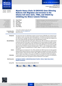 Myosin Heavy Chain 10 (MYH10) Gene Silencing Reduces Cell Migration and Invasion in the Glioma Cell Lines U251, T98G, and SHG44 by Inhibiting the Wnt/β-Catenin Pathway.