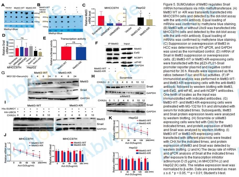 SUMO1 modification of methyltransferase-like 3 promotes tumor progression via regulating Snail mRNA homeostasis in hepatocellular carcinoma