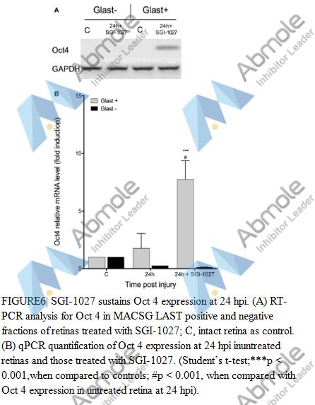 | Preparation method | Using the rat hepatoma H4IIE cells as the test system. These cells are grown in DMEM which is supplemented with fetal bovine serum (10%) and calf serum (10%). Cells are seeded into 96-well plates , 48 h later exposed them to SGI-1027 ,which concentrations are ranging from 0 to 300 µmol/L. The solubility is determined by Nephalometry techniques immediately after dosing and before harvesting the cells at 24 h. Following the exposure period, the cells or their supernatant (culture medium) are analyzed for changes in cell proliferation (propidium iodide), membrane leakage (α-GST), mitochondrial function [3-(4,5-dimethylthiazol-2-yl)-2,5-diphenyltetrazolium bromide and cellular ATP], oxidative stress (intracellular GSH and 8-isoprostane), and apoptosis. Determine the half-maximal toxic concentration (TC50) from the dose-response curves. |