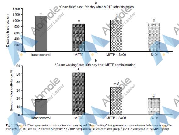 SKQ1 prevents amyloid-β-induced impairment of long-term potentiation in rat hippocampal slices.SKQ1 reverses aging-related biomarkers in rats.SKQ1 slows down the development of age-dependent destructive processes in retina and vascular layer of eyes of wistar and OXYS rats.SKQ1 increases the lifespan of male rodents under LP or SPF conditions.SKQ1 can penetrate cell membranes, and is proposed as an anti-aging treatment.Pretreatment of rats with mitochondria-targeted antioxidant SkQ1 (50 nmol/kg during 5 days) significantly increased the mRNA levels of Nrf2 transcription factor and Nrf2-induced genes encoding antioxidant enzymes SOD1, SOD2, CAT, and GPx4 in rat peripheral blood leukocytes. The increase in expression of these genes with SkQ1 addition was accompanied by increased activities of catalase, glutathione peroxidase, and glutathione-S-transferase in leukocytes.