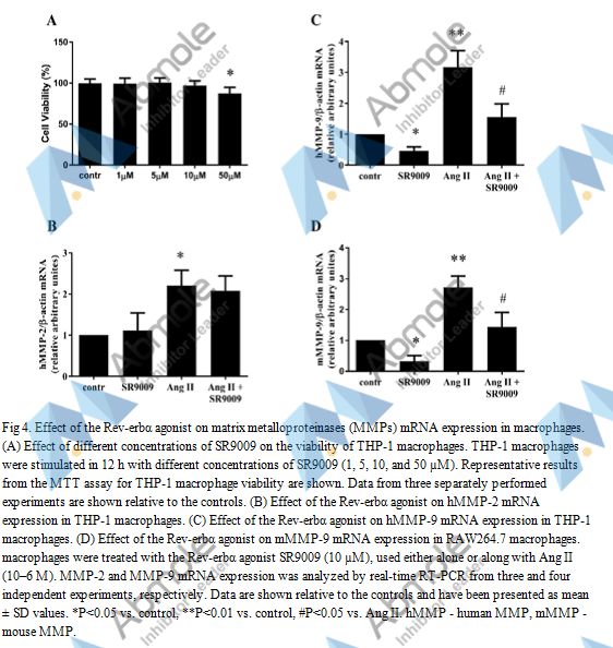 SR9011 is a REV-ERBα/β agonist with IC50s of 790 nM and 560 nM for REV-ERBα and REV-ERBβ, respectively. |