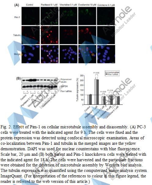 CX-6258 is a potent, orally efficacious Pim 1/2/3 kinase(IC50=5 nM/25 nM/16 nM) inhibitor with excellent biochemical potency and kinase selectivity. |
