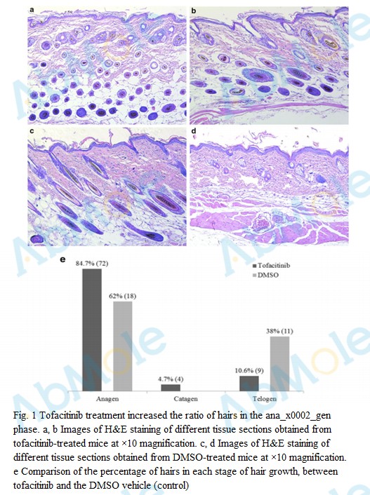 Effect of tofacitinib on the expression of noggin/BMP-4 and hair growth stimulation in mice