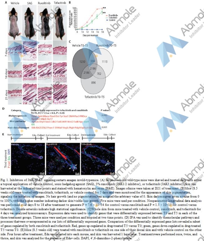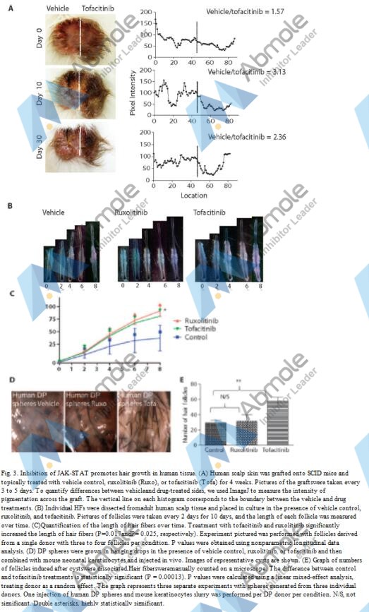 Pharmacologic inhibition of JAK-STAT signaling promotes hair growth.