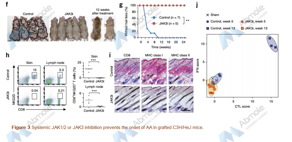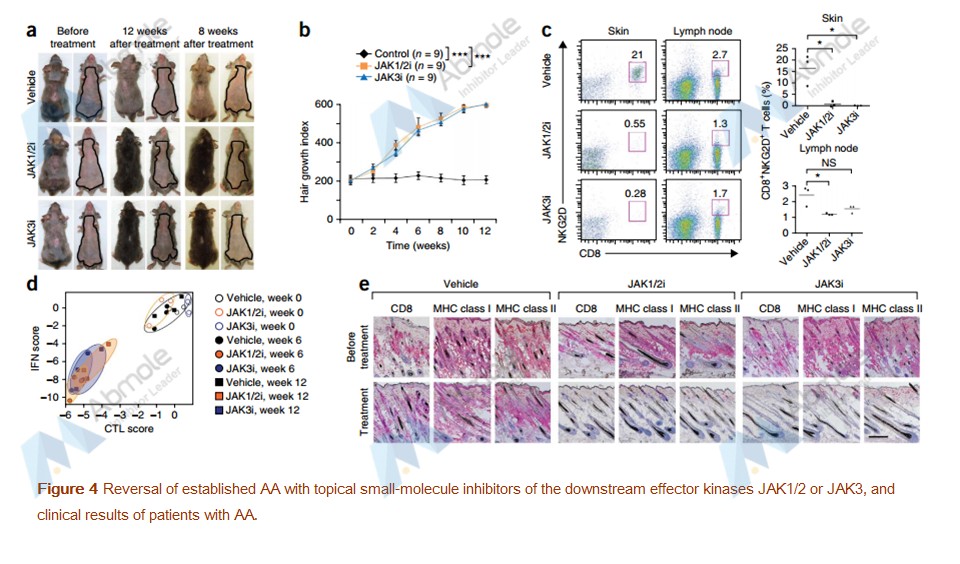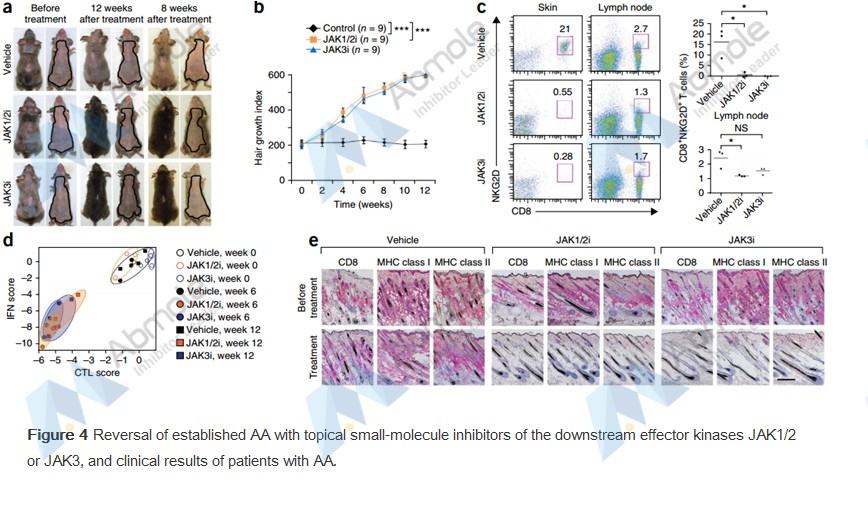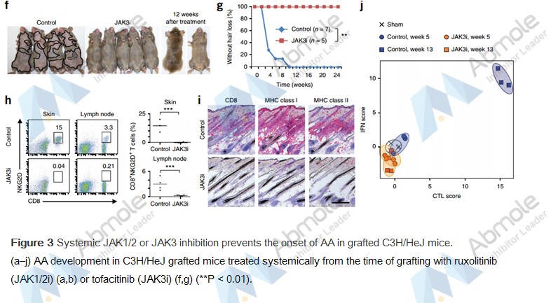 Alopecia areata is driven by cytotoxic T lymphocytes and is reversed by JAK inhibition.