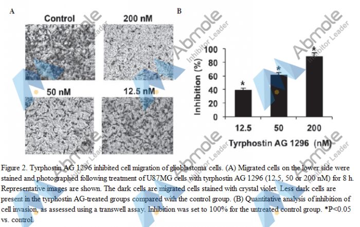 [3] Hongwei Li, et al. Tyrphostin AG 1296 induces glioblastoma cell apoptosis in vitro and in vivo