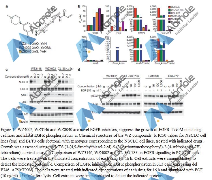 [1] Zhou W, et al. Nature. Novel mutant-selective EGFR kinase inhibitors against EGFR T790M.
