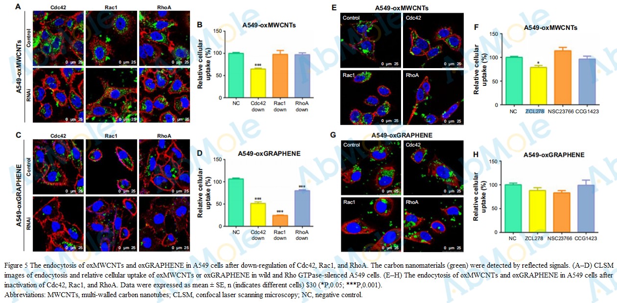 Rho GTPases in A549 and Caco-2 cells dominating the endocytic pathways of nanocarbons with different morphologies.